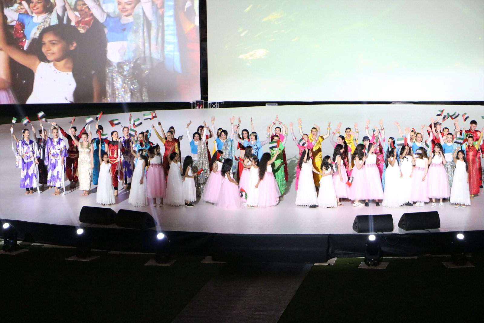 وتضمن الاحتفال مجموعة متكاملة من الفقرات الوطنية والفنية، أبرزها أوبريت وطني بعنوان هنا الإمارات، الذي جسّد بحرفية عالية تاريخ الدولة وإنجازاتها، وأضفى على الاحتفالية طابعًا مؤثرًا يمزج بين الفخر بالوطن والهوية الثقافية. كما اشتمل الحفل على عروض فنية يحييها أبرز نجوم الغناء في الإمارات والوطن العربي، بالإضافة إلى فعاليات ترفيهية وتراثية متنوعة، لتقدم تجربة شاملة للزوار من مختلف الأعمار.